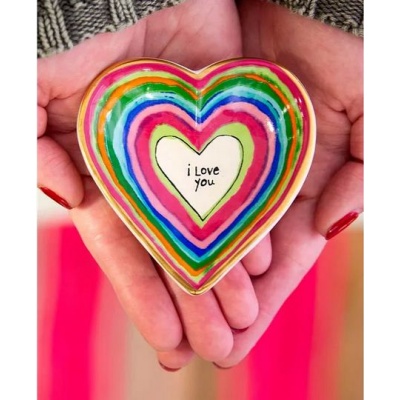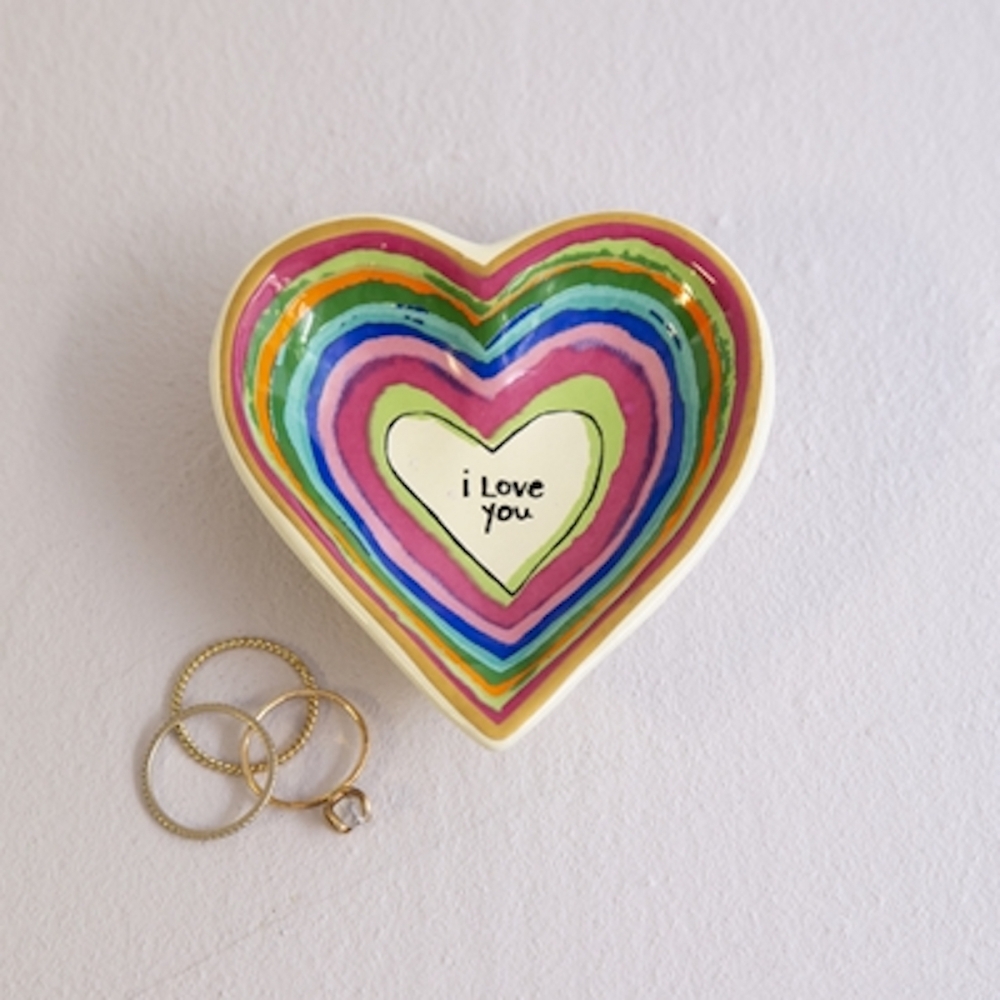 Die Mini Schale Trinket Heart "I Love You" zeichnet sich durch eine hübschen Herzform, tolle Farben und dem süßen Spruch "I love you" aus. Das perfekte Geschenk, um einem Herzmenschen eine Freude zu machen! Größe: 1,9cm x 7,6cm x 8,3cm Material: Terra Cotta. Nicht für den Küchengebrauch geeignet.