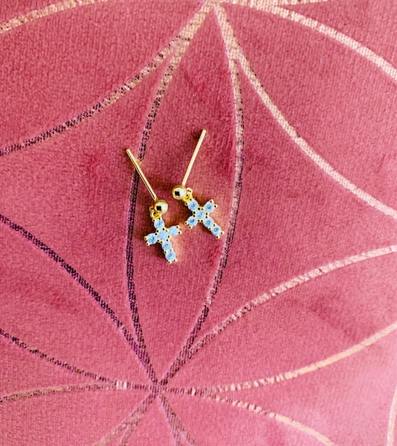 Zarte Kreuz Ohrringe, 925 Silber vergoldet, Grösse 6mm *10 mm.
